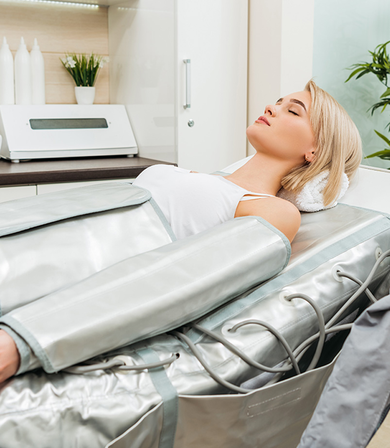 La pressoterapia è un trattamento estetico che utilizza un dispositivo che applica pressione controllata sulla pelle con lo scopo di migliorare la circolazione sanguigna ed eliminare i liquidi in eccesso.